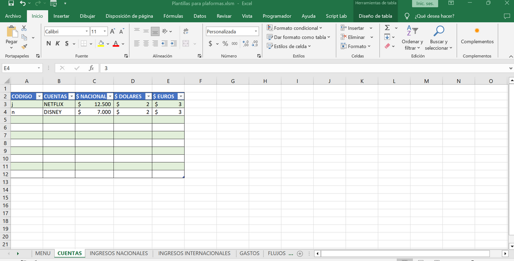 La plantilla está diseñada para gestionar y analizar datos clave de una plataforma de streaming, incluyendo usuarios, contenido, ingresos, fechas de corte.